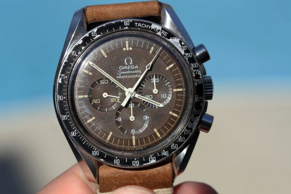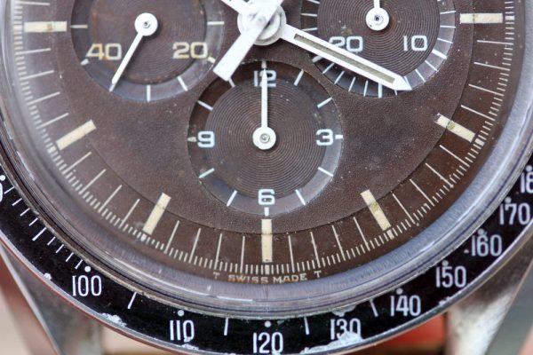 Dial is original, step, with obvious tropical brown aging. Most of the luminous has chipped off from plots. Pictures shows are taken outside, under natural light in shade as well as in direct sunlight. No artificial lighting or flash used.