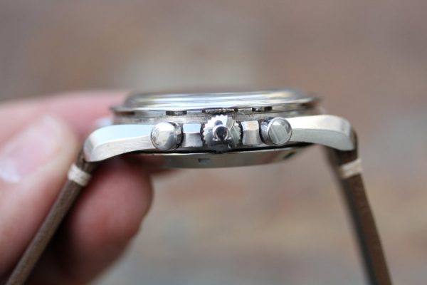 Excellent vintage condition case without any major dings or dents. Sharp lugs, but has been polished before. No corrosion or pitting.