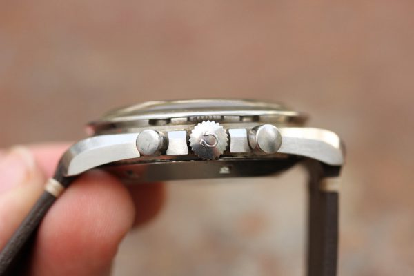 No box or papers. No documented service history. The chrono runs, stops, and resets. The watch winds smoothly, runs at about -15 seconds per day.