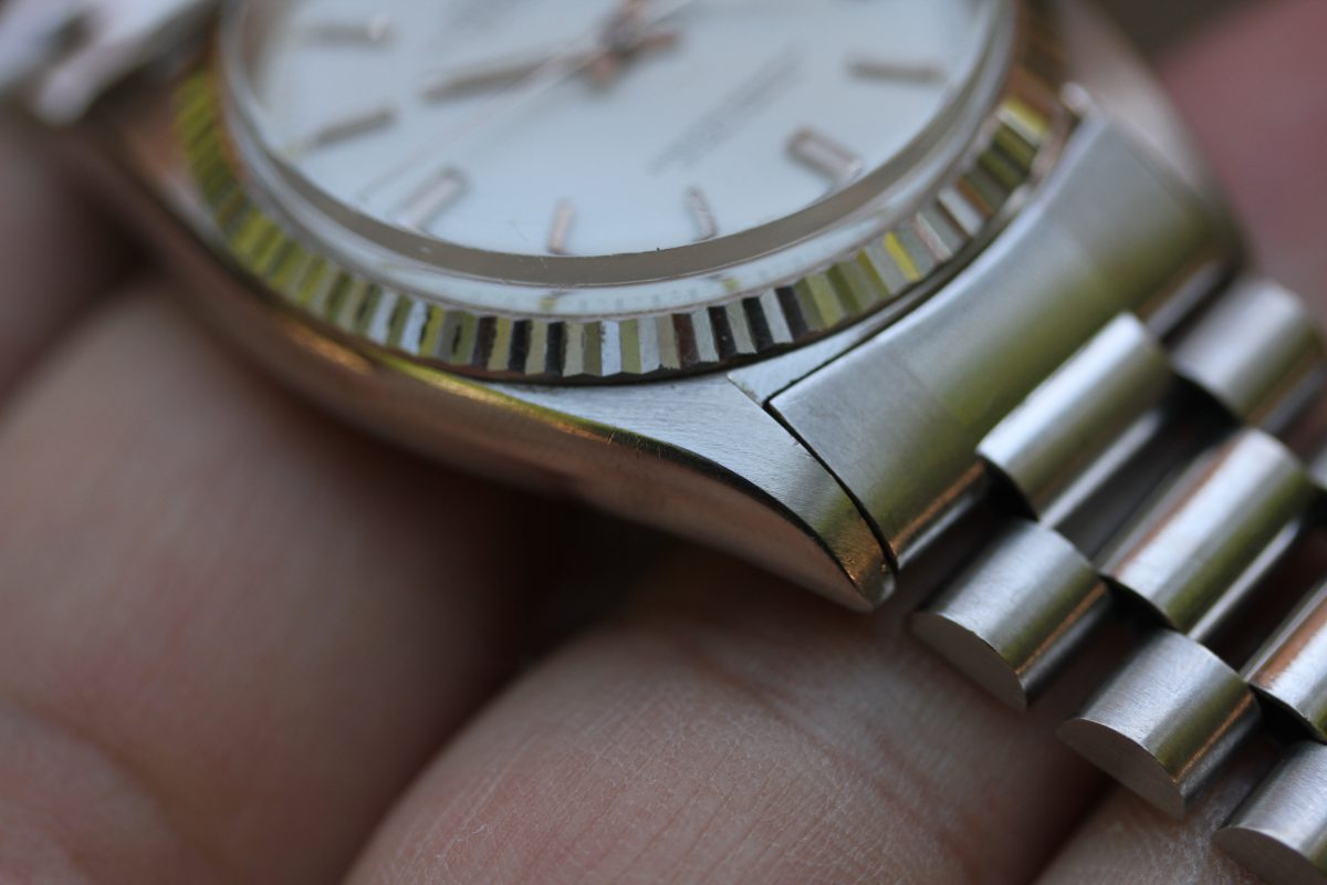 Bracelet is original to the watch and as found President style South American market in 18kt white gold.