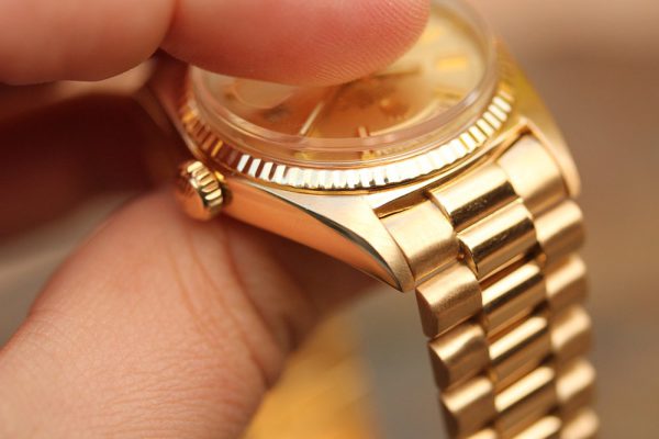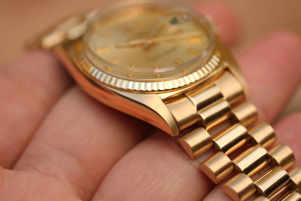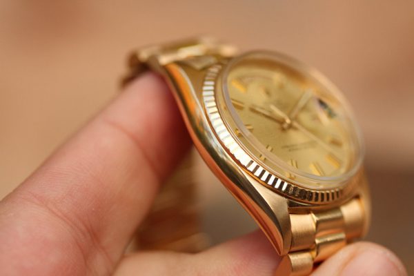 Up for grabs is a Rolex Day-Date in 18kt yellow gold