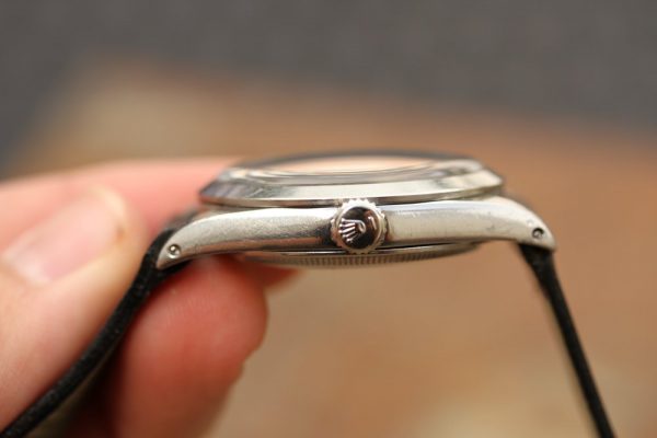 The crystal was badly scratched and chipped, so a new and genuine Rolex crystal was installed prior to listing the watch for sale.