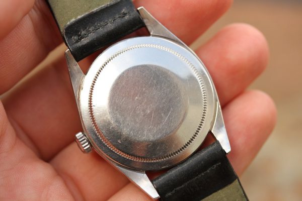 This watch was found indirectly by me from original owner, who wore it most of its life on a two-tone jubilee bracelet, which he liked better. That bracelet was discarded by me (it was aftermarket anyways) and a strap put on. This is for full disclosure.