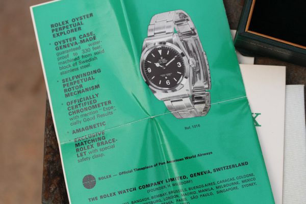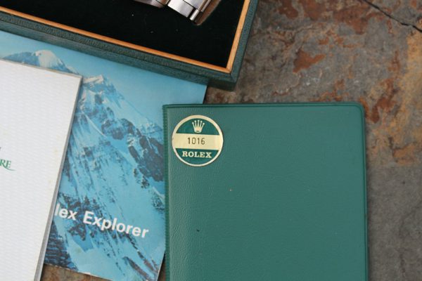 Watch comes complete with Rolex box, manual or US AD name and address stamped on back. Warranty booklet, which is stamped with matching serial number and 1016 and also dated 12/72 (the date it left Rolex USA to the AD). The watch also comes with Explorer brochure and wallet with 1016 sticker on it.