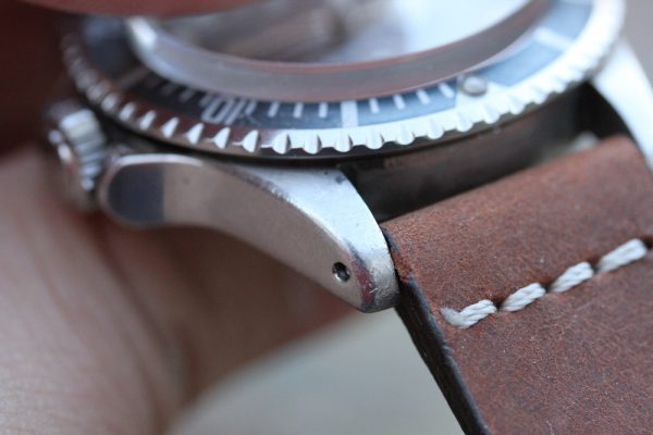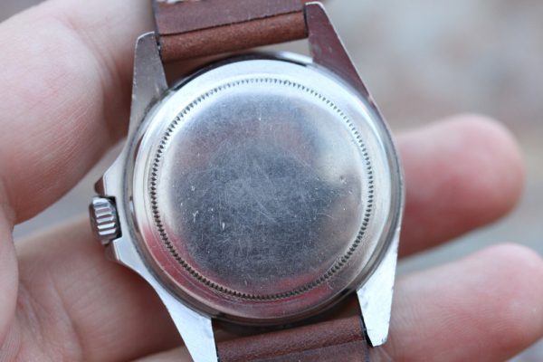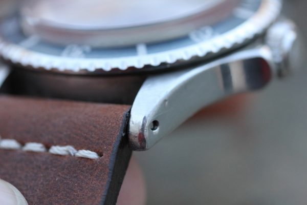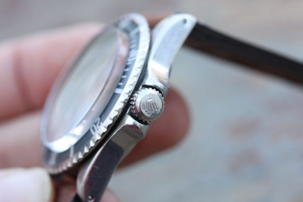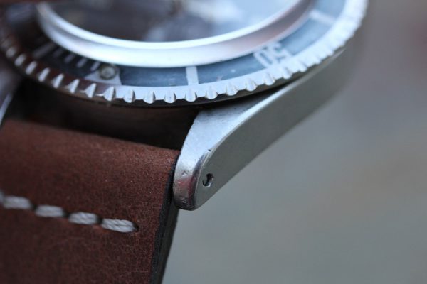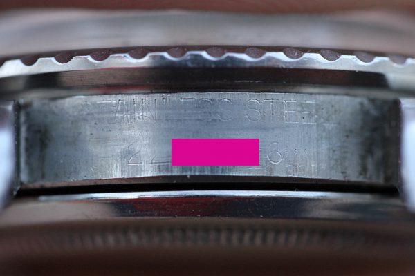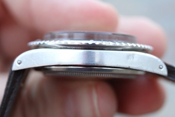 Very good vintage condition case with sign of wear. Lugs are thick, show a bevel. Crown guards are thick, the winding crown is original twin-lock. Serial and reference numbers are intact and visible.