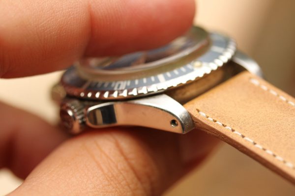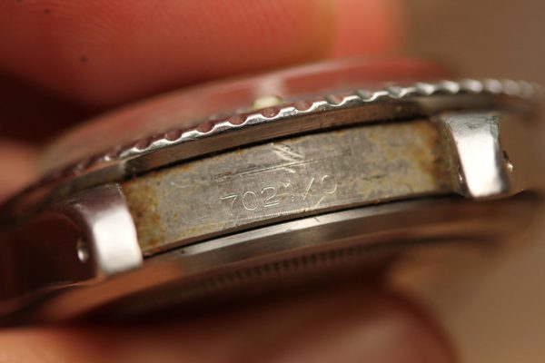 The dial is original, with distinctive “grainy” texture of blue as correct for 7021’s. Often times these dials are badly aged with bubbling and degradation, but this one was preserved nicely with nice creamy patina on plots and hands.