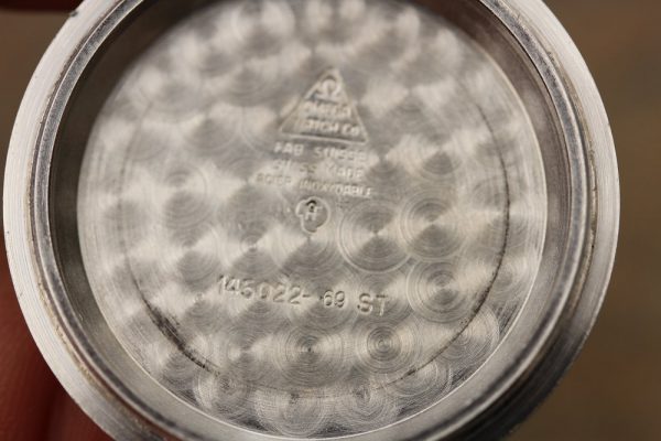 Caseback stamped 145.022-69 inside. The outer engraving is very sharp, but the black paint/enamel is gone from the letters.