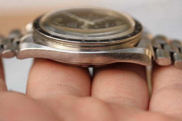 Dial is original, step, with very attractive yellow patina. No damage on dial. Hands are tritium and original with dark patina.