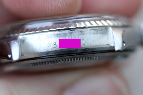 Excellent vintage condition case without major dings or dents. No corrosion or pitting. Serial and reference numbers are clearly intact and easily visible.