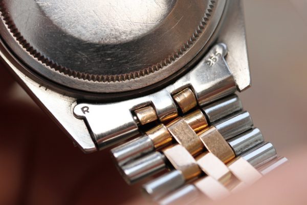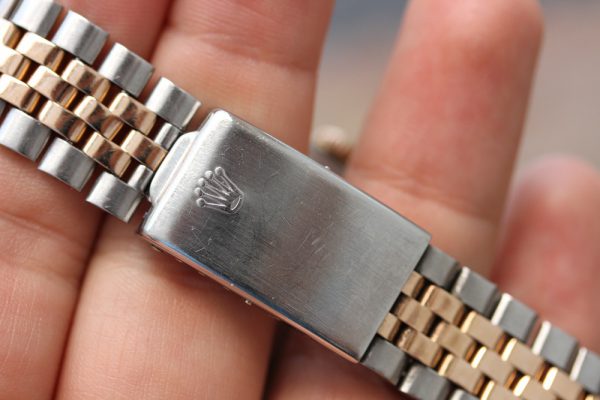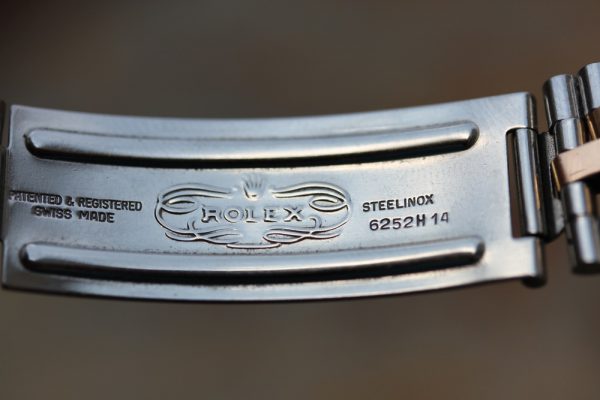 Bracelet is original Rolex 6252H folded Jubilee link in steel and rose gold. Fully linked. Correct R 255 end-links, ’71 dated.