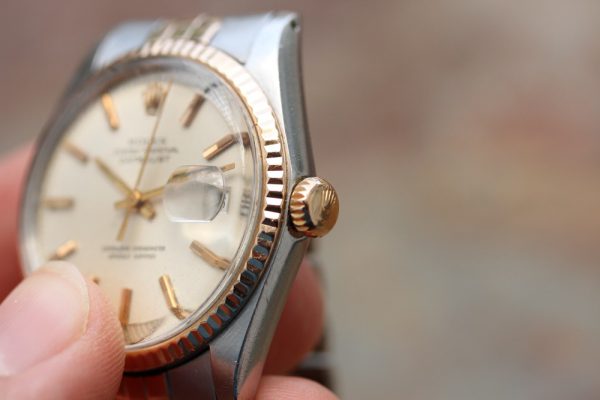 Original rose gold bezel and winding crown.