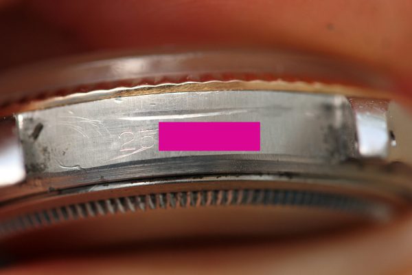 Excellent vintage condition case without major dings or dents. Strong and even lugs. Serial and reference numbers are fully intact and clearly visible.