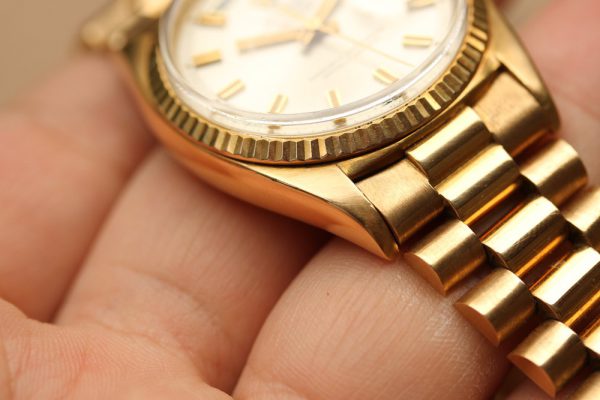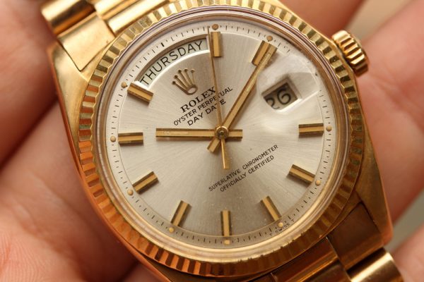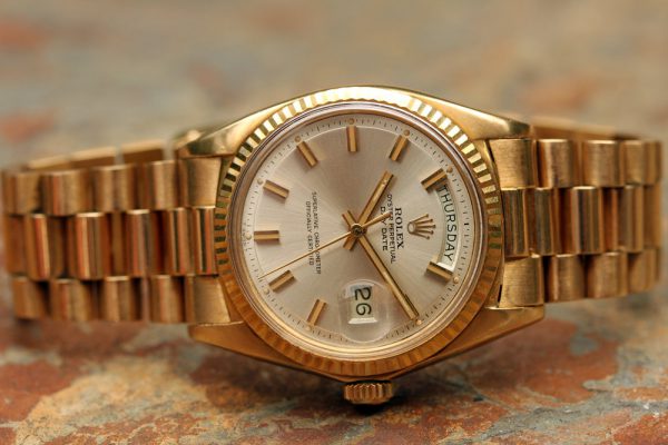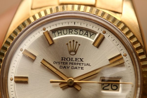 Up for grabs is a Rolex Day-Date President in 18kt yellow gold