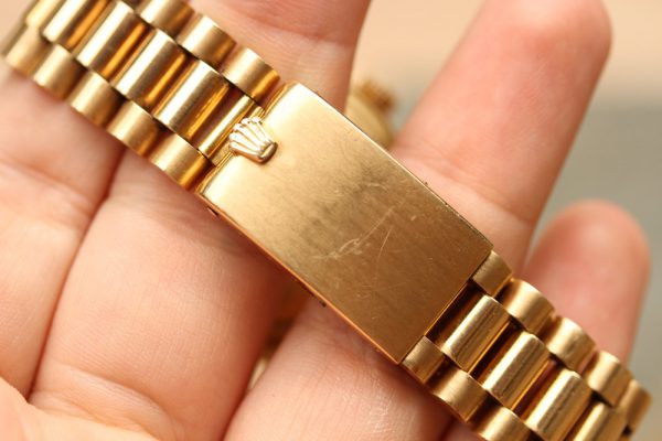 Bracelet is original Rolex president in tight for its age condition, 4/70 date code, correct “53” end-links.