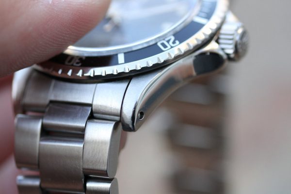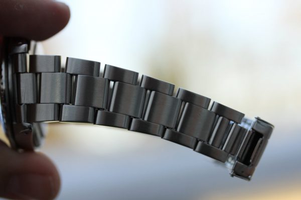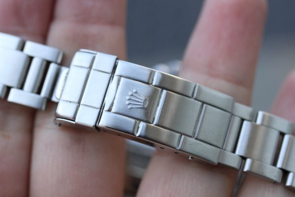 Bracelet is a newer Rolex 93150 with 12 links, 501B ends, P date code, diver’s extension and shows stretch from use as seen in pictures.