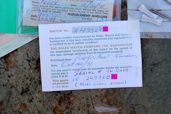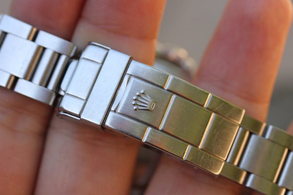 The watch comes with 2 bracelets. One is original Rolex 9315 with folded links, fully linked. The other one is a K stamped 93150, also containing full links and 593 end-links. The reason why it comes with both, is because the 93150 bracelet is also part of history of this watch. The original owner, whose name is on both receipts from 1971 as well as from 1988, has purchase the 93150 from a store to “upgrade” it from folded link bracelet. The receipt is dated in 1988 and names matches to the name we see on receipt from 1971 when the watch was originally purchased.