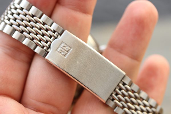 Bracelet is rice bead with HLF stamped end-links. Not signed Heuer.