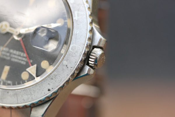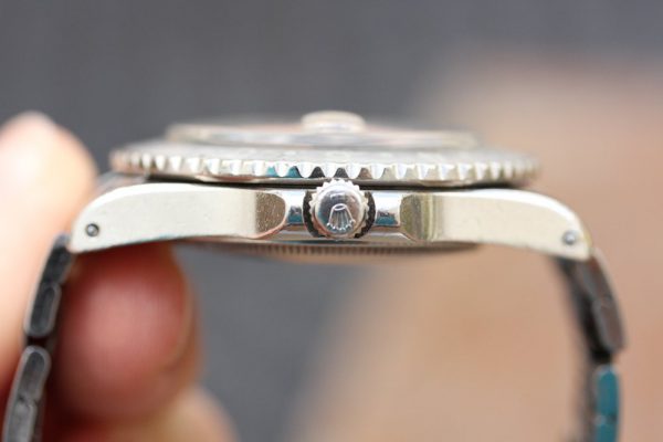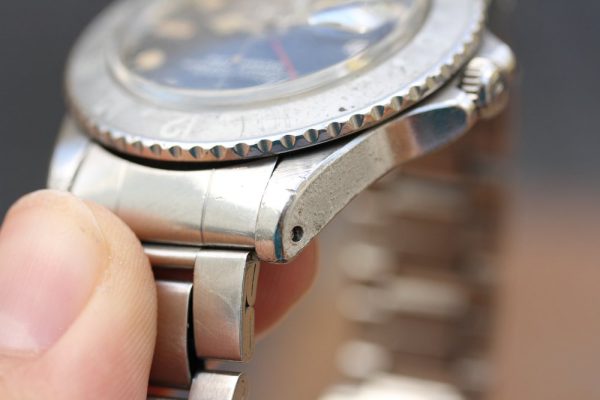 Very good condition dial is original, tritium. There is even micro-spotting throughout. Cream patina on plots and original tritium hands. Date disk with open 6’s and 9’s.