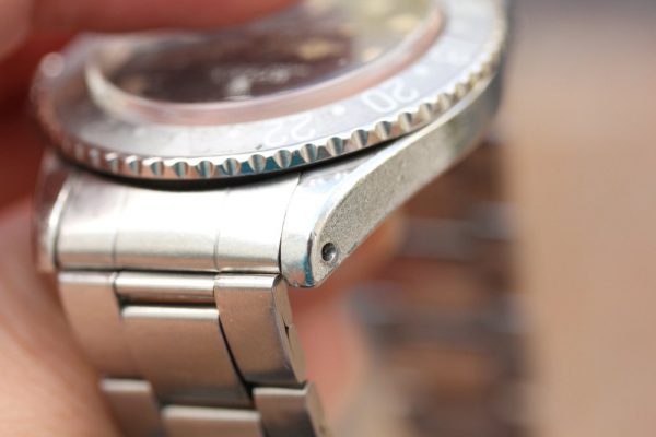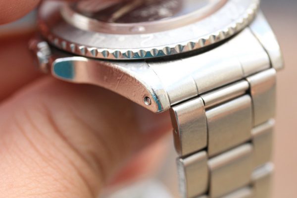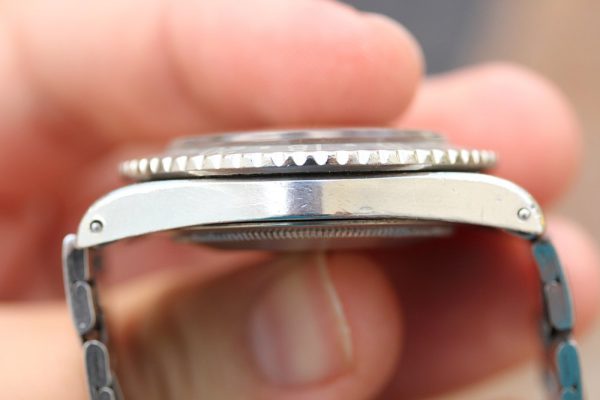 Very good vintage condition case. The case shows obviously signs of wear, but still retains thick lugs and crown guards. Serial and reference numbers are intact and visible.