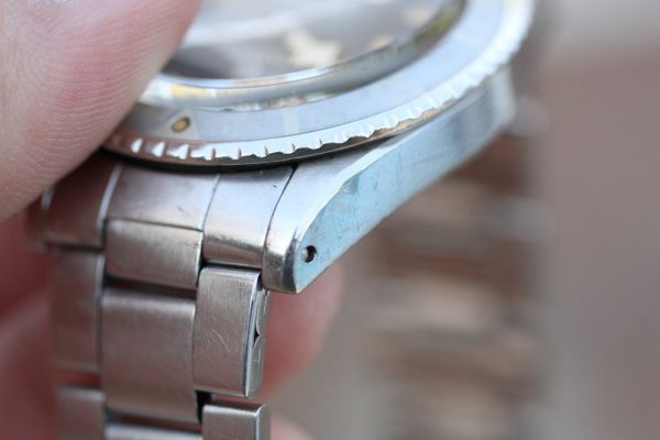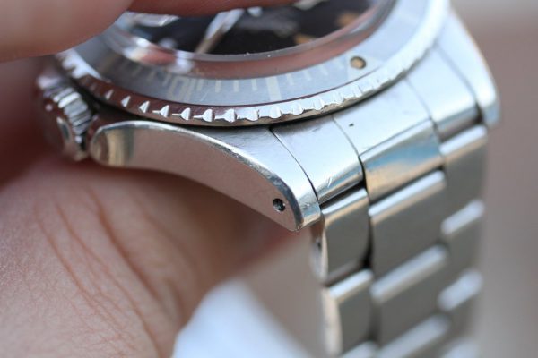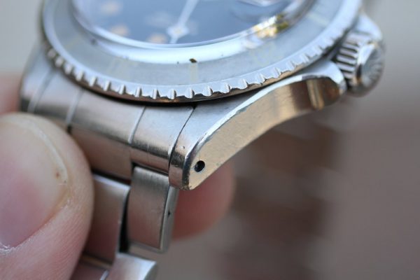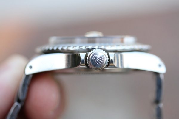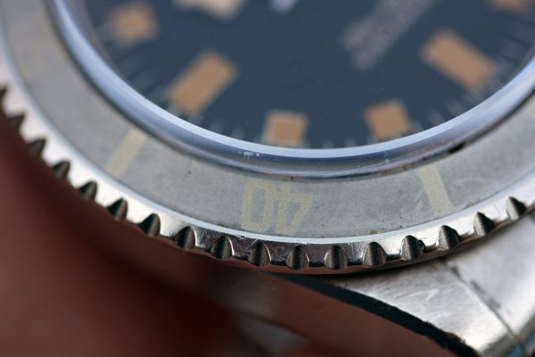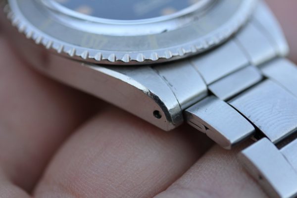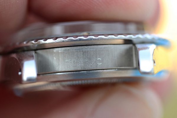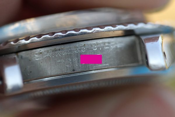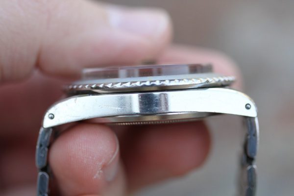 Excellent vintage condition case with very thick and even lugs. Very obvious original chamfers, thick crown guards. Serial and reference numbers are fully intact and clearly visible. The original twin lock crown is a bit loose when you unsrew it, but functions fine and is kept original.