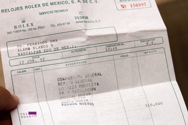Watch comes complete with Mexican RSC service records with matching numbers to the watch.