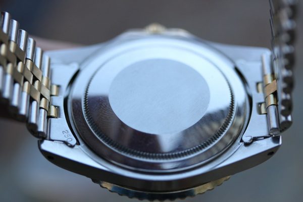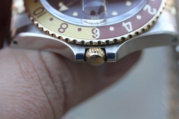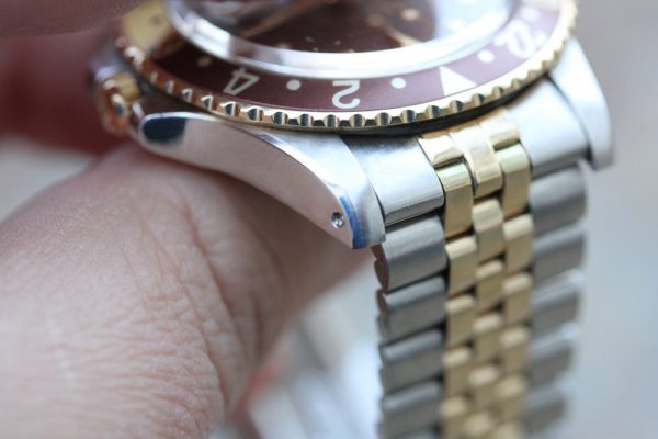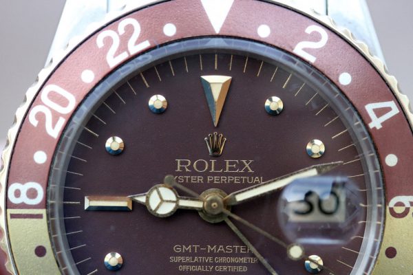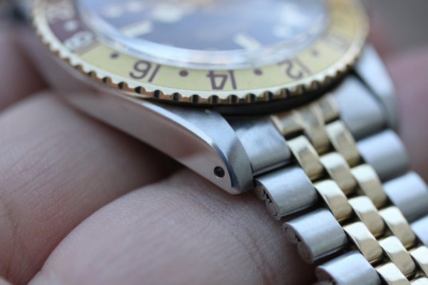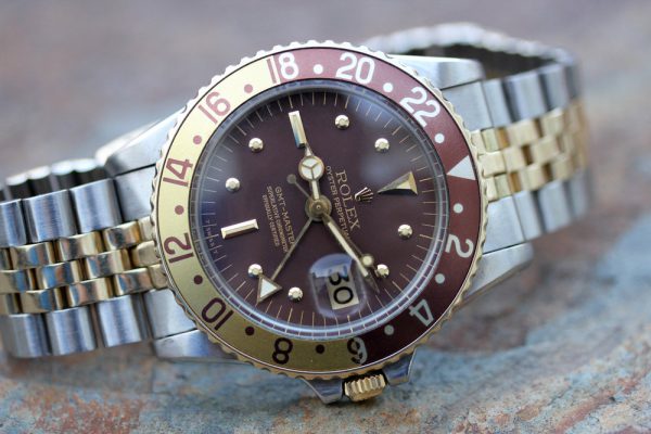 Up for grabs is a Rolex GMT-Master in steel and 14kt yellow gold