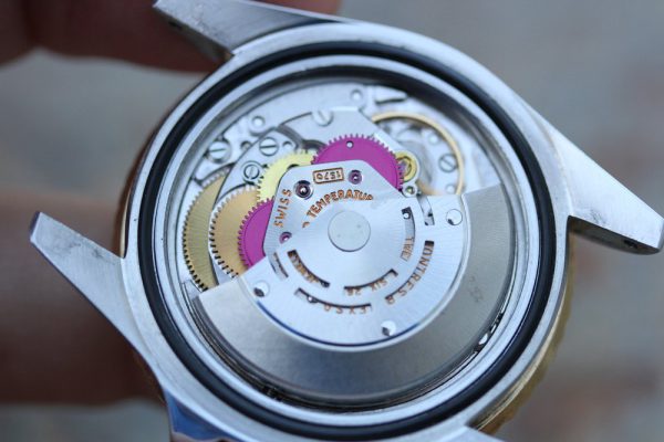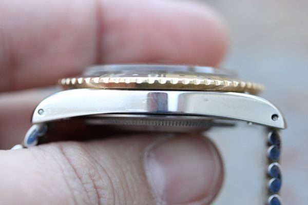 Dial is original, “rail” in flawless condition with nice cream patina on plots and original tritium hands. Original date disk with open 6’s and 9’s.