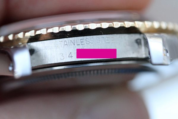Superb condition case is nearly unpolished with clearly original chamfers on lugs. The serial and reference numbers are very clear and fully intact with no “bracelet wear” seen over the numbers. Original sharp crown guards.