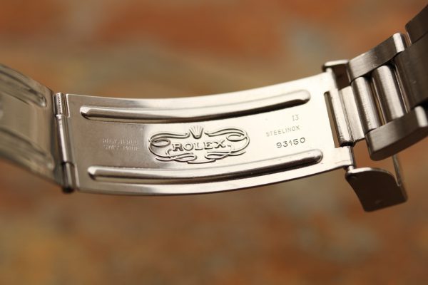 Bracelet is a Rolex 93150 with moderate stretch, 580 ends, 11 links, diver’s extension, and I date code.