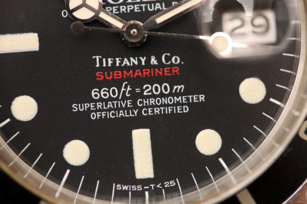 Dial is original, MK6 Red with Tiffany & Co signage. No chips, scratches, drag marks, etc. All lume is fully intact and has aged to a cream color with very well preserved tritium hands that match in color. Original date disk with open 6’s and 9’s.