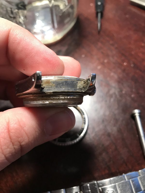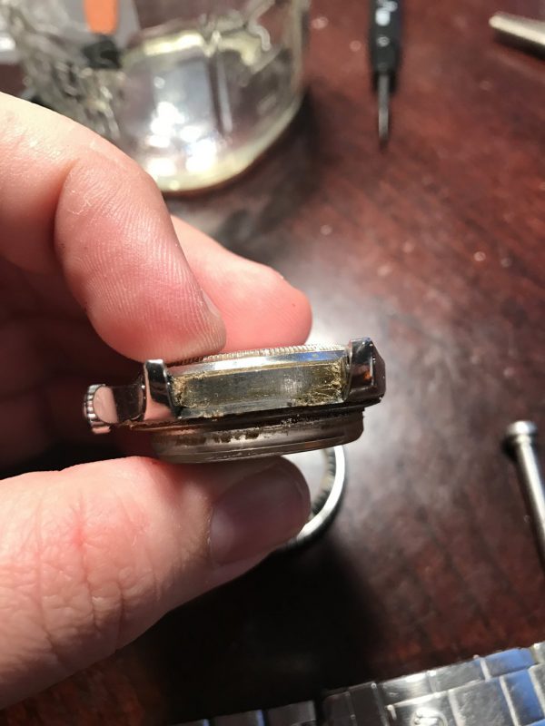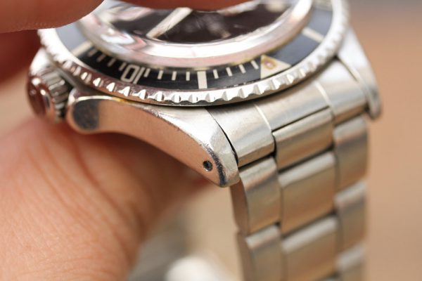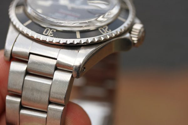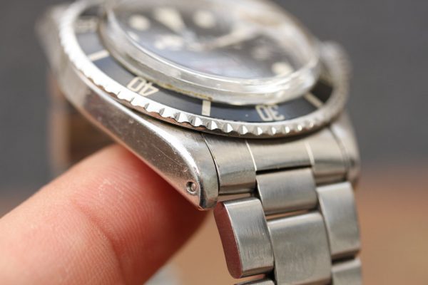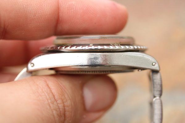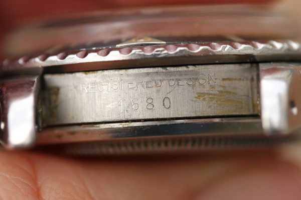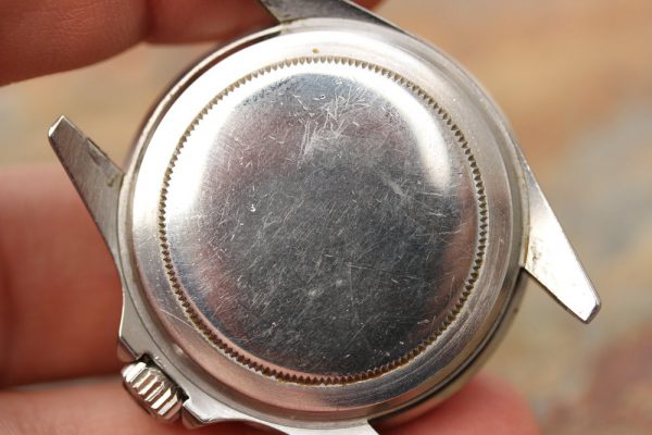 Excellent vintage condition case still retains thick and even lugs and crown guards. Underneath the grime between the lugs were well preserved serial and reference numbers. Fully intact and clearly visible.