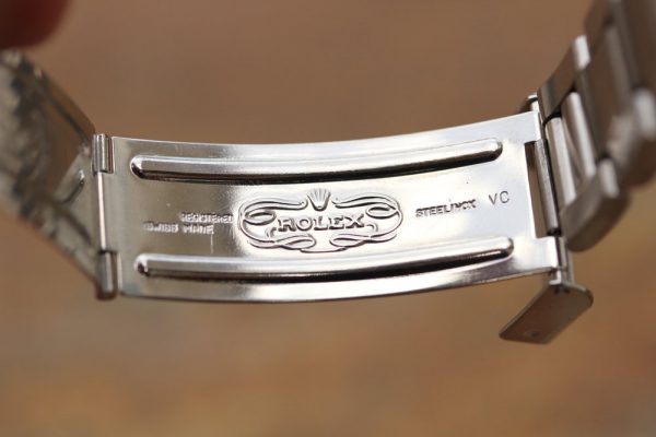 Bracelet is a Rolex 93150 with 11 links, diver’s extension with “patented” stamp on it, 580 ends, VC date code on clasp.