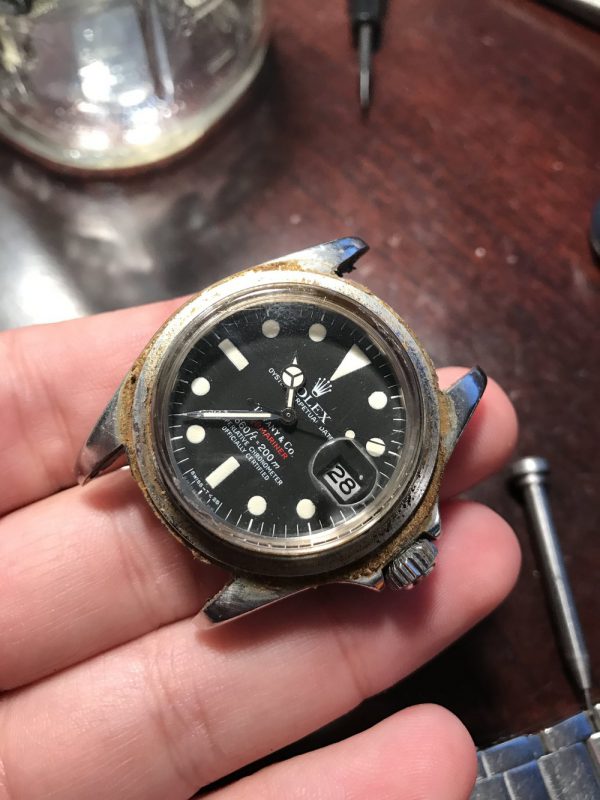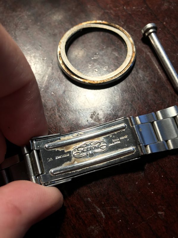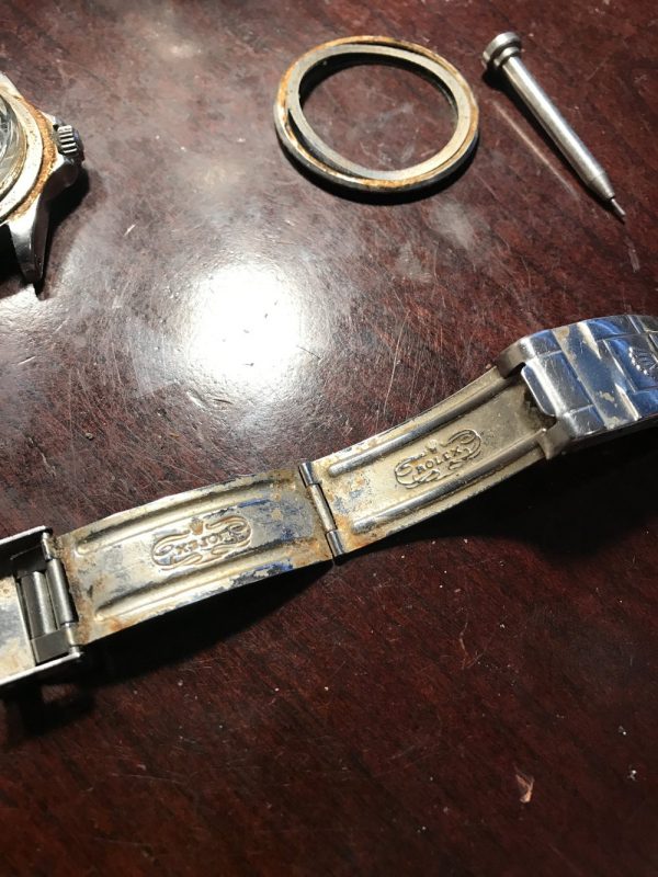 This watch has been found from an estate along with a Tiffany table clock from their late owner. He wore this watch often and without hesitation. The clasp and bezel were covered in grime, gunk, and dirt (I’ve attached some pictures below). The crystal was scratched up but the most important part, the dial, remained in flawless preserved condition. The watch has been cleaned up, but kept exactly as found. Nothing has been swapped out, added, or removed.