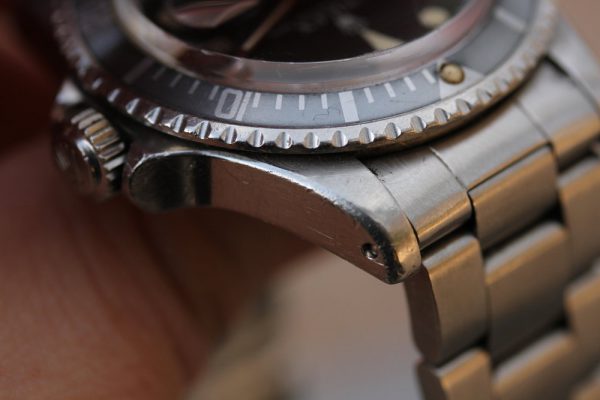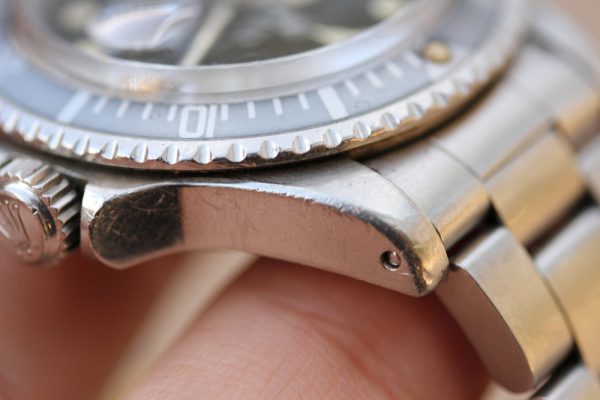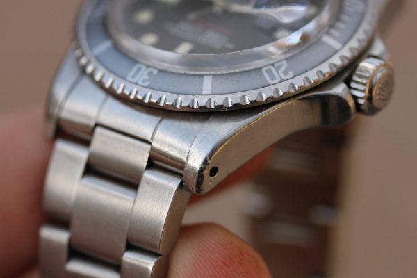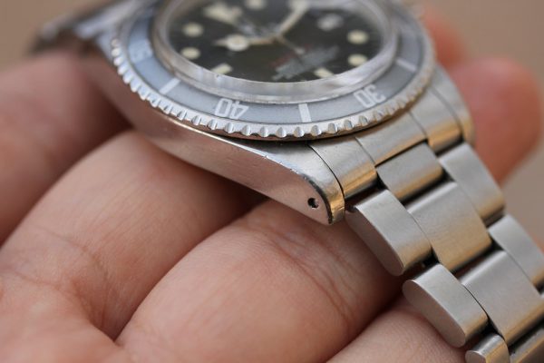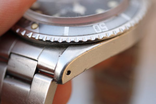 Excellent vintage condition case with thick lugs and crown guards. You can see the factory chamfers on lugs and steps on crown guards. Serial and reference numbers are clearly intact.