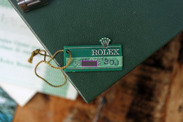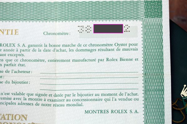 The watch’s warranty papers have a date code, which was put on papers in US during this time and indicated the date when the watch was shipped from Rolex USA to the AD. In this case, its AAX, which translates to July, 1975.