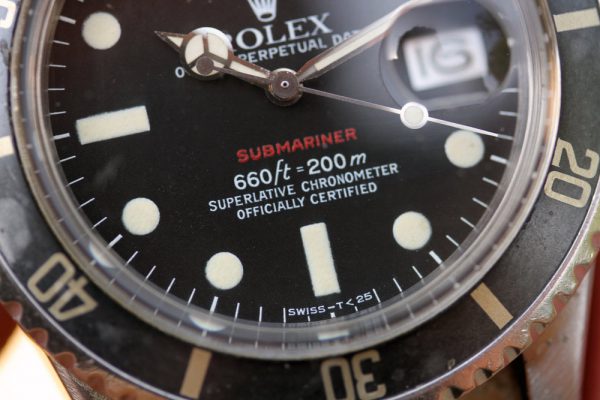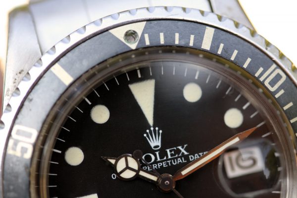 Dial is original, damage free with nice creamy patina on plots and original tritium hands. Original date disk with open 6’s and 9’s. No relume, no refinish.