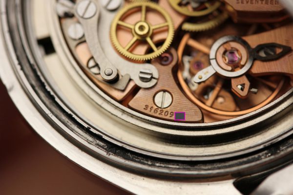 Dial is original and correct “flat” with yellow patina on plots. The hands are probably are service replacement down the road.