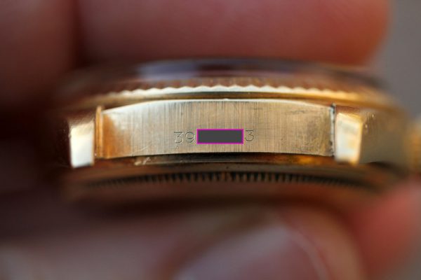 Excellent vintage condition case with thick and even lugs. Serial number is very clear without bracelet wear.