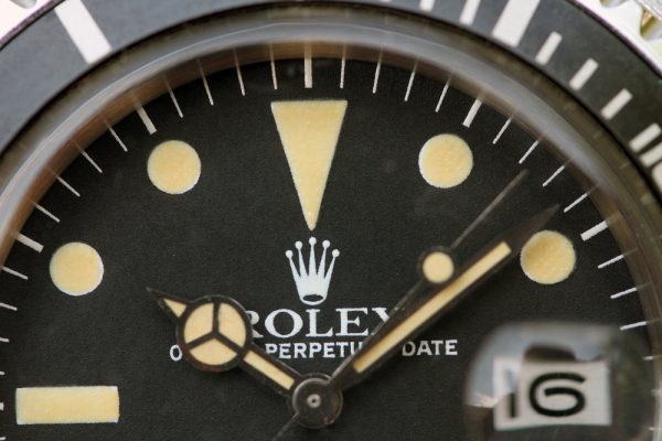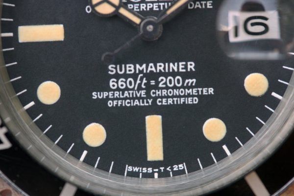 Dial is MK1 with closed 6’s in flawless condition. No chips, scratches, marks, or lume loss. Very attractive yellow patina on plots and original tritium hands. No relume, no refinish. Date disk with open 6’s and 9’s.