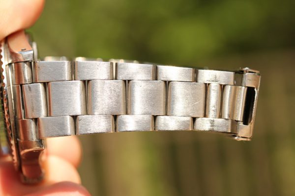 The uncommon part of this bracelet is the date code. It is stamped 1/76 and is the last known numeric code Rolex used on Swiss made bracelets. The generally accepted code for 1976 is “A” as part of the first letter code system. A neat feature to add to this watch.