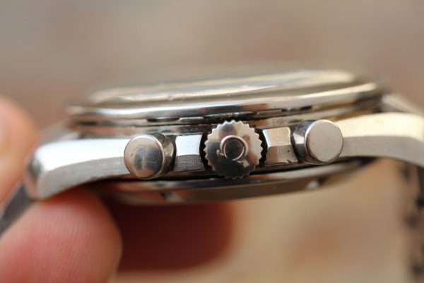 Excellent vintage condition watch appears to be unpolished. Shows signs of wear in form of scratches and small dings. Sharp and well defined lugs. Crown and pushers appear original. No corrosion or pitting.