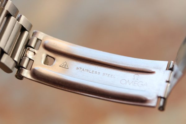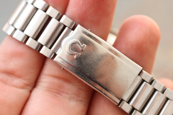 Bracelet is original, JB for Omega with “47” end-links and brick links. Appears to be fully linked.
