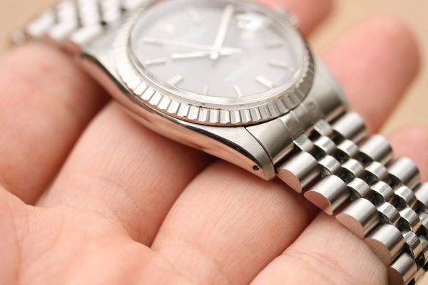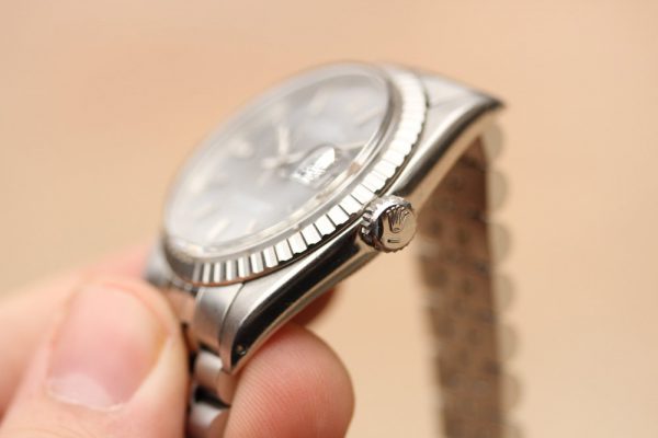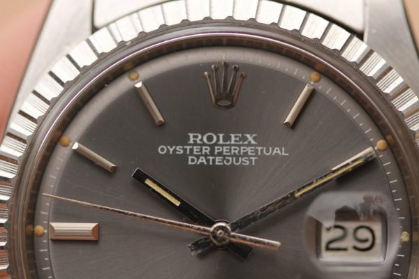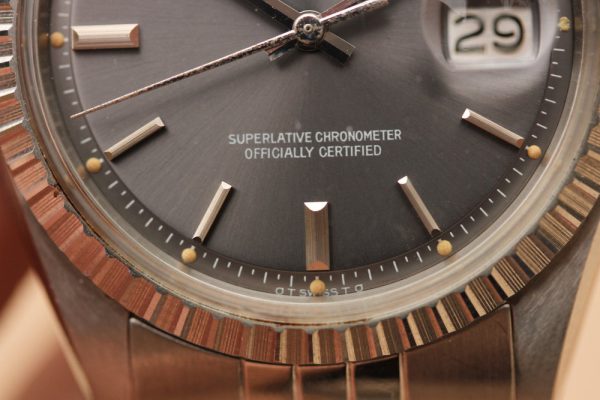Dial is original, very attractive gray with white pring and bright patina’d plots and hands. Original open 6’s and 9’s on date disk. No relume, no refinish.