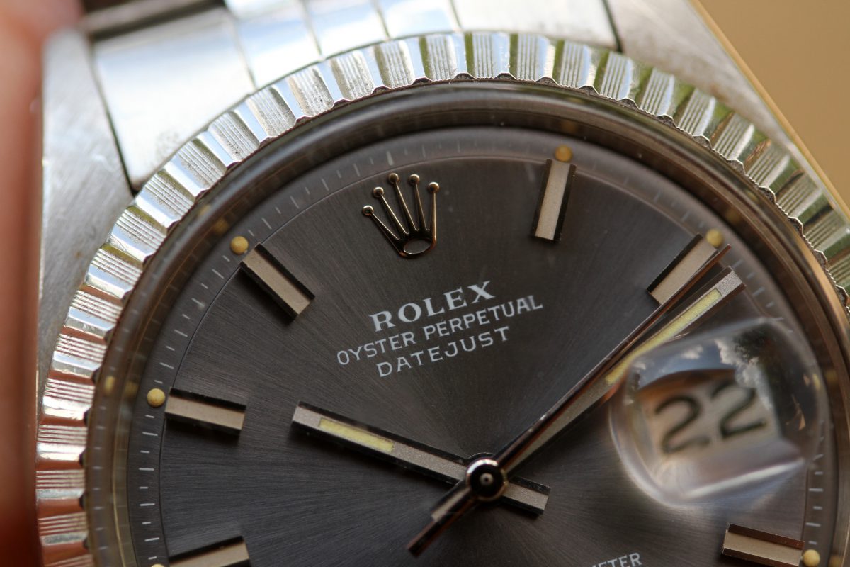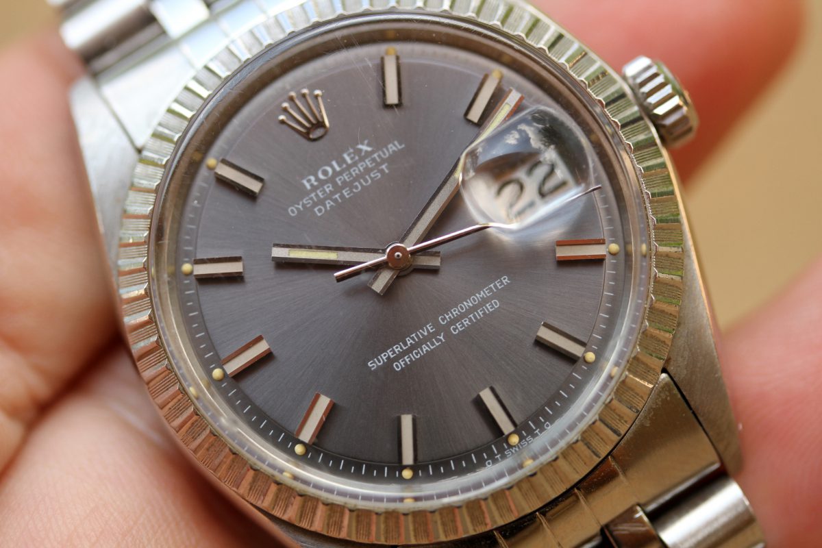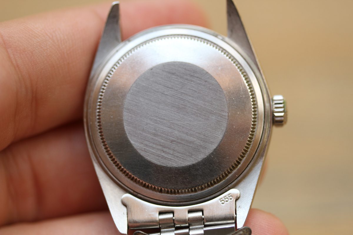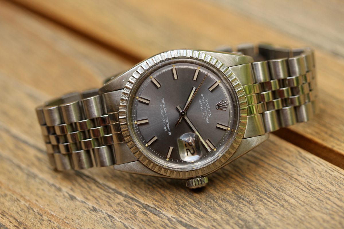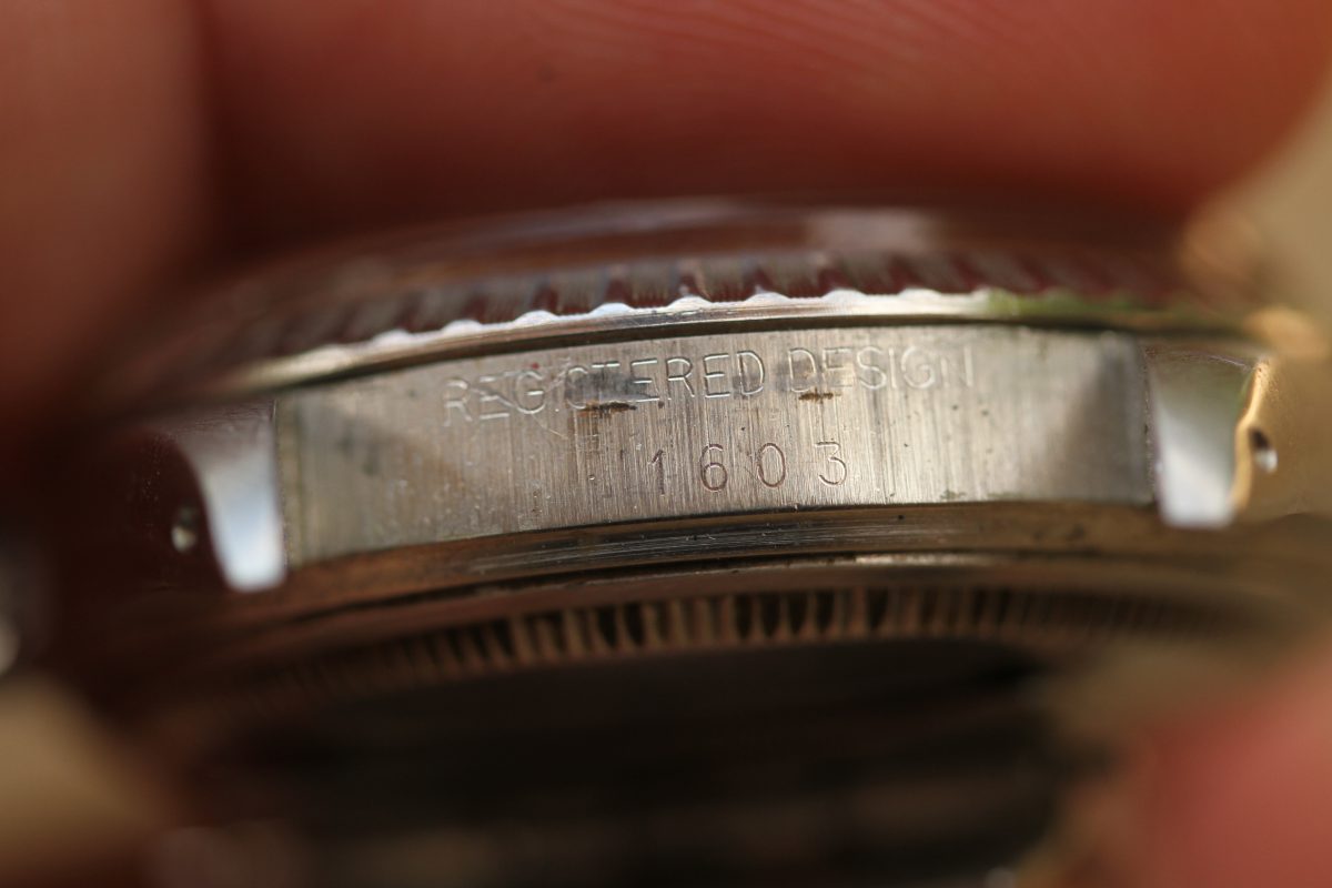 Reference 1603 with machined steel bezel, 36mm case, acrylic crystal.