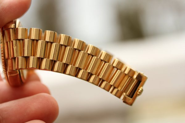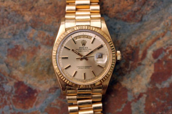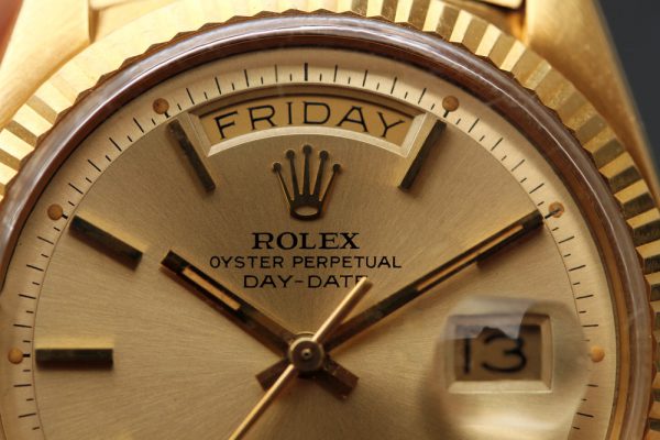 Up for grabs is a Rolex Day-Date in 18kt yellow gold