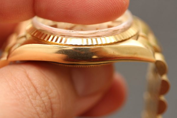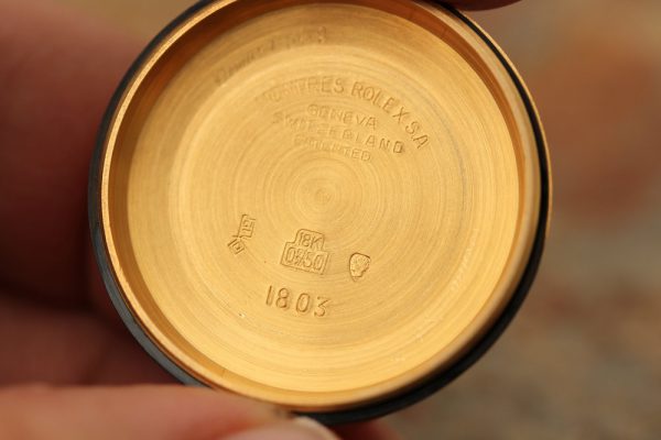 Caseback is original, damage free, inside is stamped 1803 with Rolex and 18kt gold hallmarks.