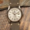Dial is original, silver with Arabic numeral minute track. Damage free with nice patina on hands and plots. All plots are intact. Day disk is in Spanish; date disk is correct with open 6’s and 9’s.