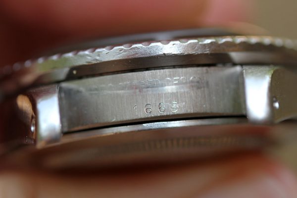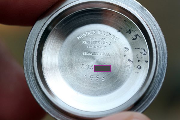 Original caseback with clear outer engravings and stamped 1665 and serial number inside matching the case.