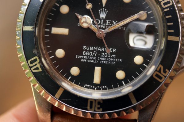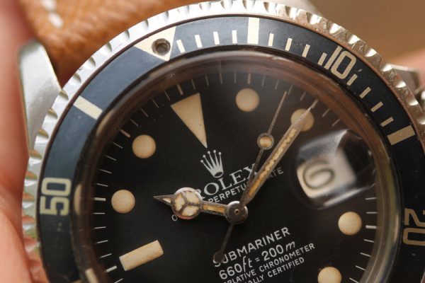 Dial is original, MK1 white print with nice creamy patina on plots and hands. No chips, scratches, drag marks, etc. No relume and no refinish. Silver date disk with open 6’s and 9’s.