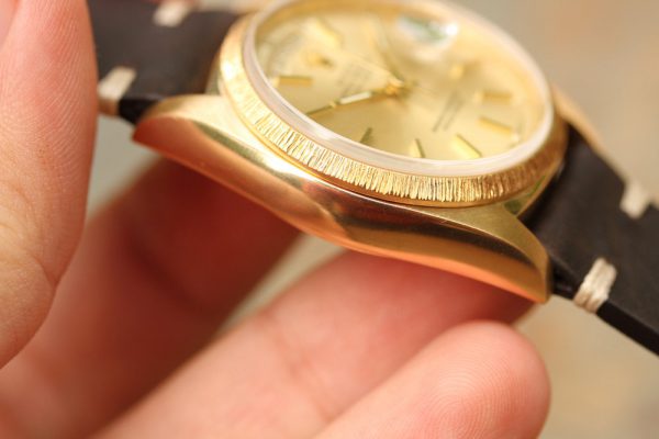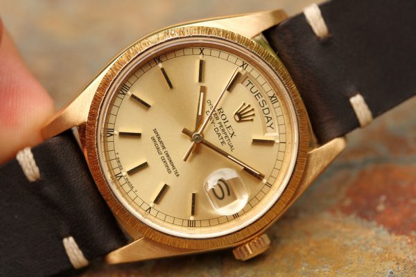 1978 Rolex Day-Date 18078 Yellow Gold on Strap, Bark Bezel